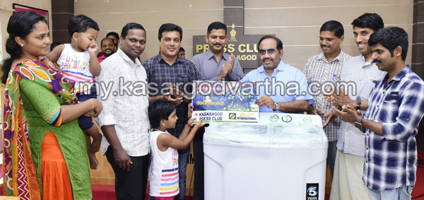 | ലോകകപ്പ് ഫുട്ബോളിന്റെ ഭാഗമായി കാസര്കോട് പ്രസ്ക്ലബ് സംഘടിപ്പിച്ച പ്രവചന മത്സര ജേതാവായ ഇഷ കെ ലൈജുവിന് വെല്ഫിറ്റ് ഇന്റര്നാഷണല് സംഭാവന ചെയ്ത വാഷിങ്മെഷീന് യഹ്യ തളങ്കര സമ്മാനിക്കുന്നു |